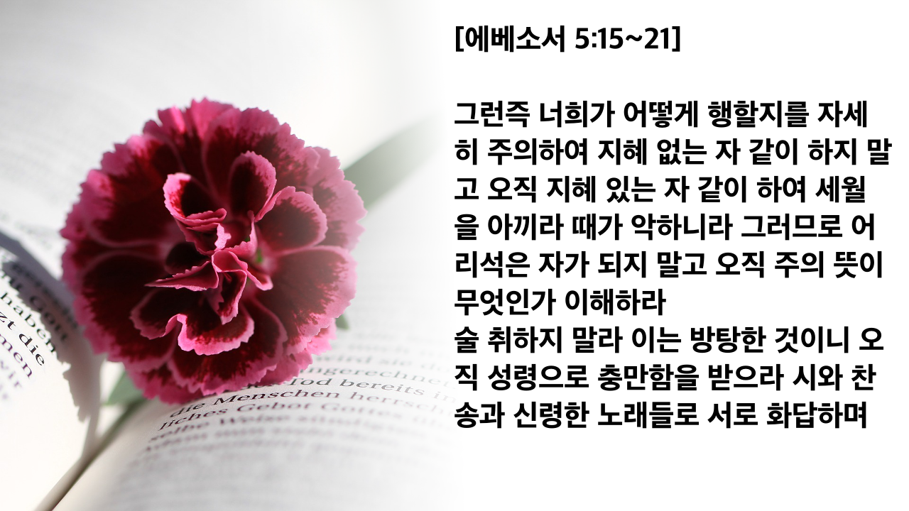 술 취하지 말라 이는 방탕한 것이니 오직 성령으로 충만함을 받으라
